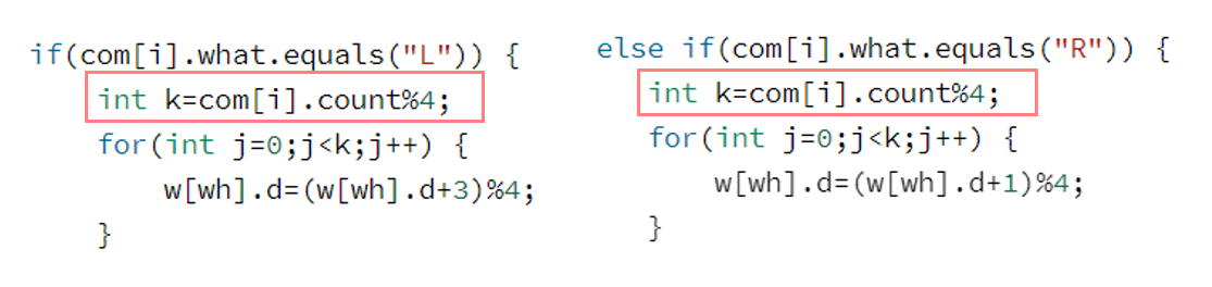 여기서 고려했던 점은 count 총 명령어 수행 횟수가 4의 배수 단위로 수행된 것이 같기 때문에 나머지 한 수로만 계산하면 된다.
