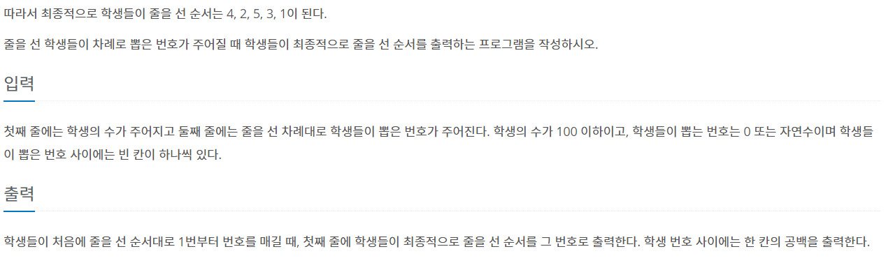 이 문제는 ArrayList 즉 정렬을 얼마나 알고 있냐 하는 문제였다. 학생의 수가 100 이하이기 때문에 ArrayList 삽입으로도 해결할 수 있는 문제였다.