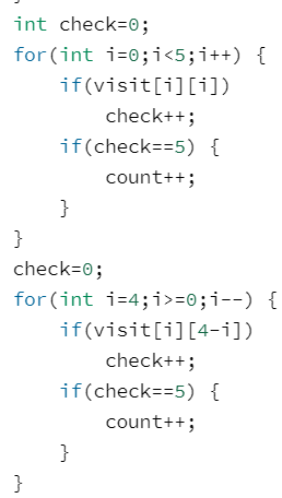 대각선을 검사하는 소스이다.