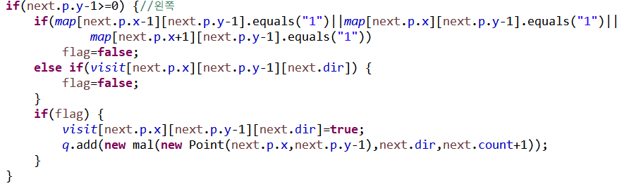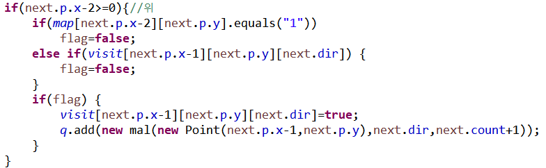 else if(visit[next.p.x][next.p.y-1][next.dir]) {