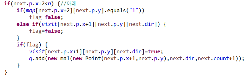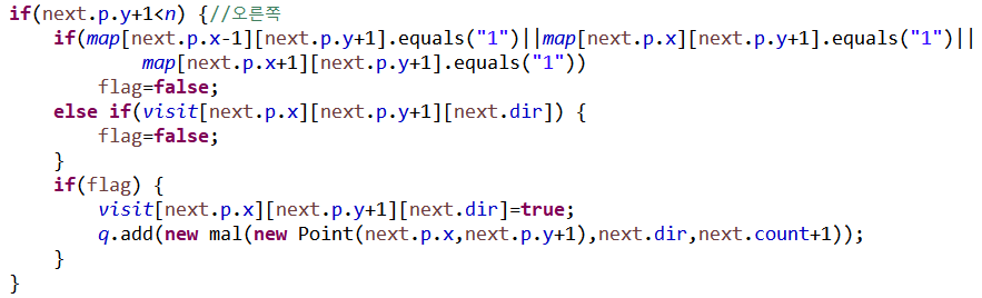 else if(visit[next.p.x][next.p.y+1][next.dir]) {