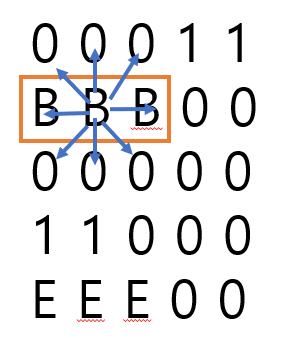 else if(map[startp.x+dir[i][0]][startp.y+dir[i][1]].equals("B")){