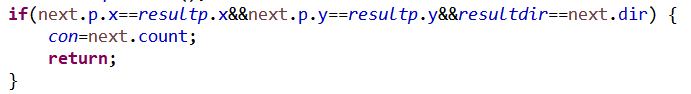 if(next.p.x==resultp.x&&next.p.y==resultp.y&&resultdir==next.dir) {