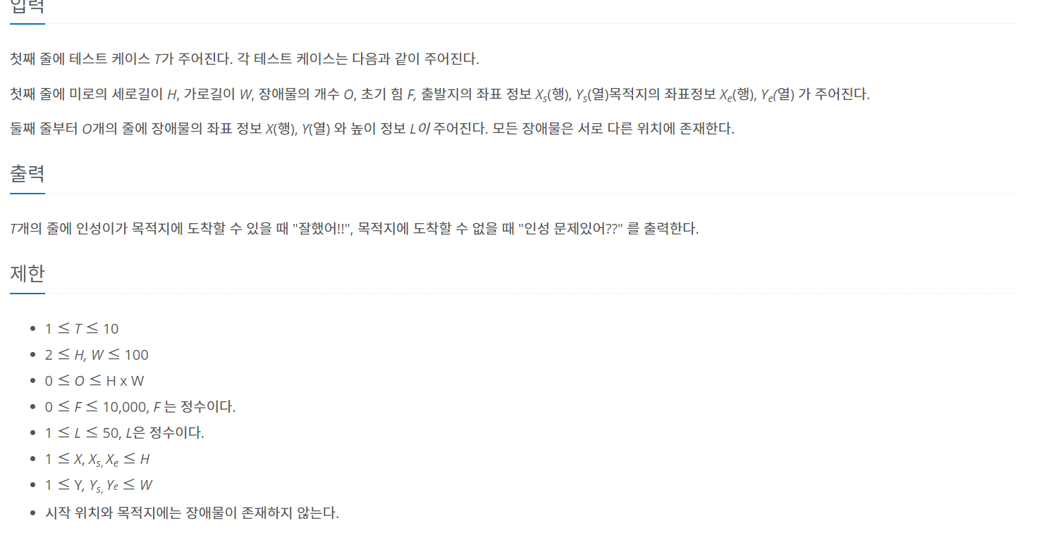 처음에 우선순위 큐로 풀어야 되나 라는 고민을 잠시 했지만 높이의 차만큼 에너지가 감소되는 것이 아니기 때문에 그냥 Queue로도 풀이가 가능하다.