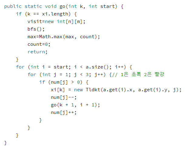 기본적으로 k는 총 고른 씨앗의 수를 나타내고 start는 ArrayList에 담은 씨앗의 위치를 나타냈다.