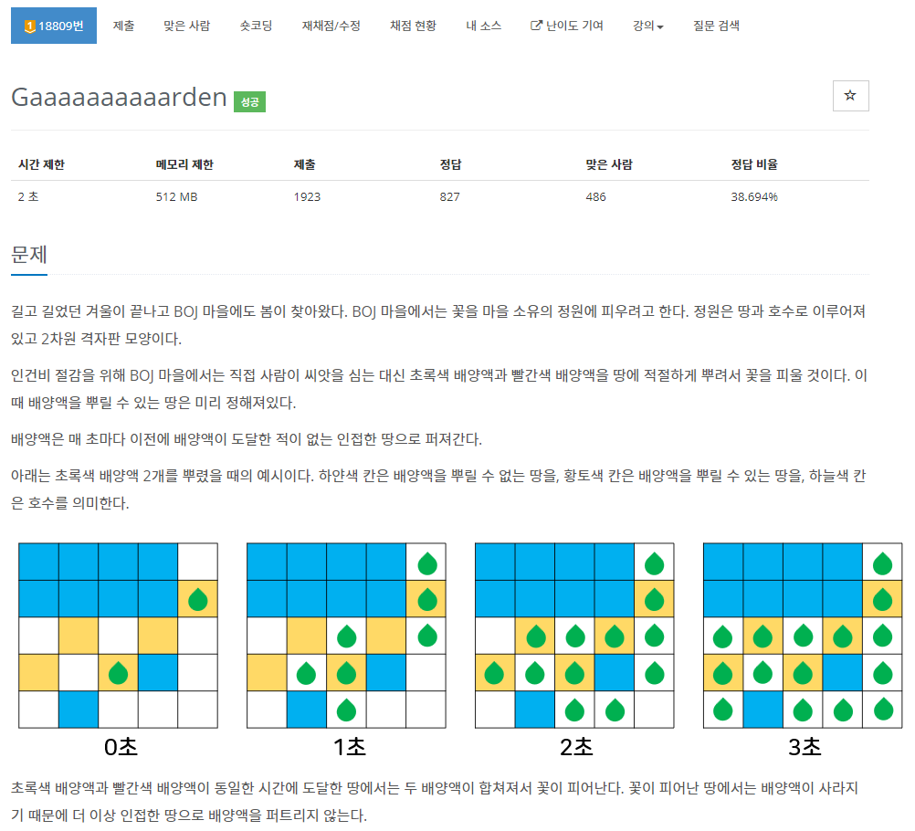 2번 부분을 처리하는게 가장 힘이 들었는데 두 개의 씨앗이 동시에 마주치는 경우를 처리해주는 방법이 어려웠다.