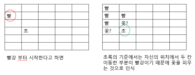이 부분에서 또한 중요한 부분은 자신이 한칸을 이동할 수 있으면 그 지점에서 4방향을 탐색해 자신과 다른 씨앗이 있으면 꽃이 필수 있다고 체크를 하는 것이 중요하다.