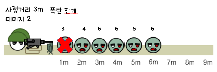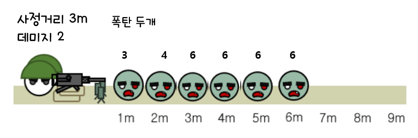 그렇게 되면 3m까지는 몬스터들의 기관총 맞은 횟수가 1 줄어든다.
