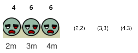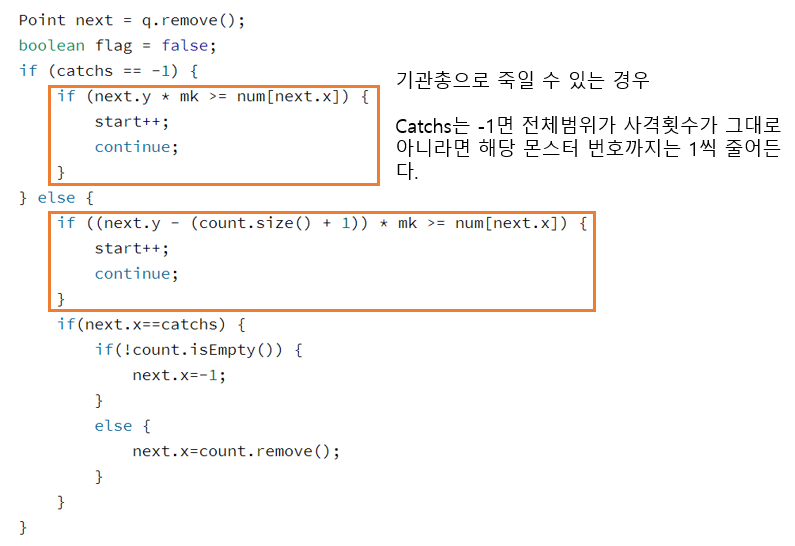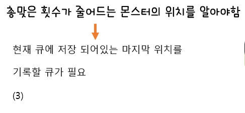 한 가지는 윈도 슬라이딩을 사용할 큐, 그리고 폭탄으로 죽일 시 기관총 범위 가장 끝의 몬스터 넘버