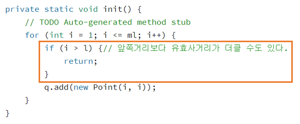 if (i > l) {// 앞쪽거리보다 유효사거리가 더클 수도 있다.