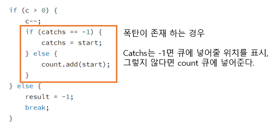 폭탄이 존재하는 경우 처리해주는 부분이다.