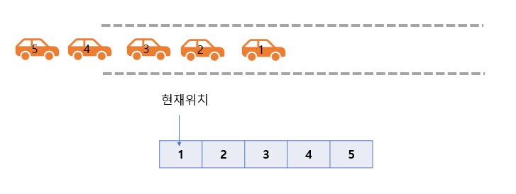 자동차가 1 2 3 4 5 순서대로 들어간다.
