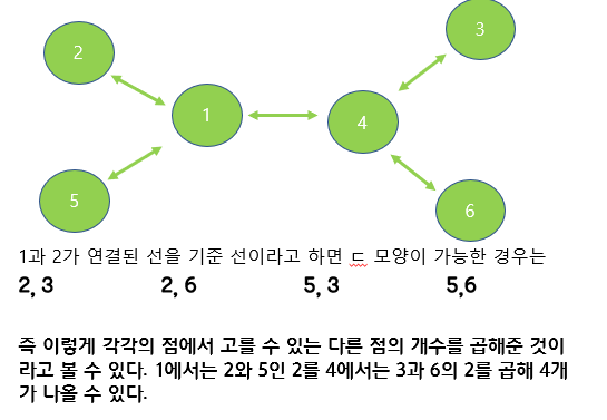 다음은 ㄷ의 경우를 고려해보자. ㄷ의 경우는 어떤 점과 어떤 점이 연결되어 있을 경우 각각의 점에서 다른 점에 연결될 수 있는 경우들을 고려해주면 된다.