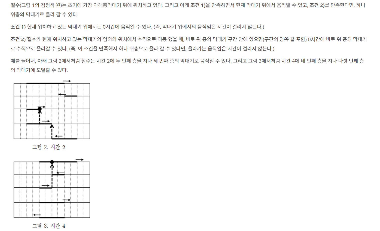 이 문제는 현재 위치에서 위로 올라갈 수 있는지를 판단해서 올라가는 구현 문제이다.