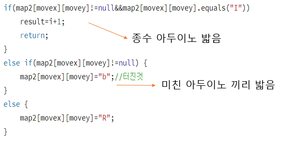 if(map2[movex][movey]!=null&&map2[movex][movey].equals("I")) {